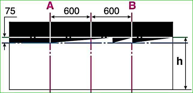 Размер «h» должен соответствовать расстоянию от поверхности площадки до центра фар.