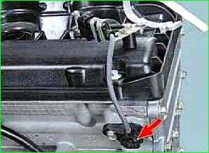 Датчик фазы расположен в задней части головки блока цилиндров с левой стороны.