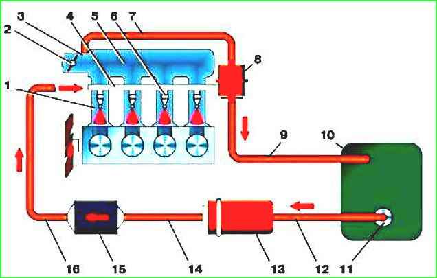 Из топливопровода двигателя топливо впрыскивается форсунками во впускную трубу.