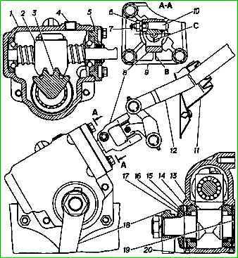 - - снять крышки 17, 19 и губчатый уплотнитель 16 с вала-сектора;