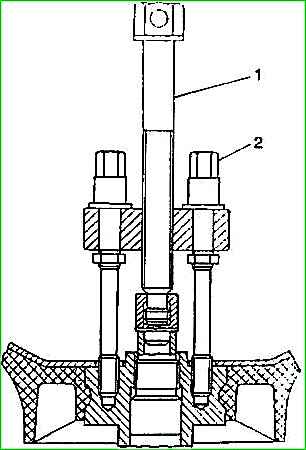 - - отвернуть гайку крепления сошки и снять съемником 7823-6092 сошку с вала-сектора рулевого механизма;