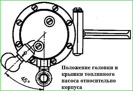 Головка и крышка при сборке насоса должны быть поставлены относительно корпуса в положение, показанное на рисунке 5.