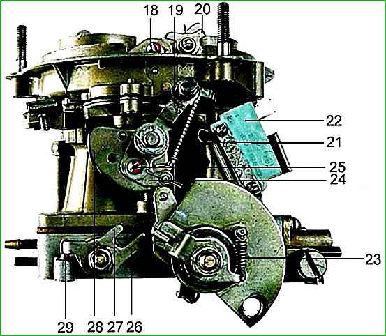 - - следить, чтобы дроссельные и воздушная заслонки поворачивались совершенно свободно, без заеданий и плотно прикрывали свои каналы;