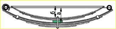 Для этого натяните тонкую веревку или проволоку между центрами отверстий проушин рессоры и замерьте расстояние «а» от верхней поверхности первого листа у центрального болта до натянутой веревки.