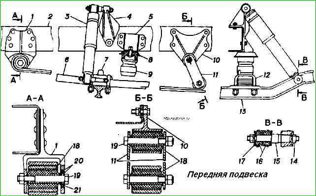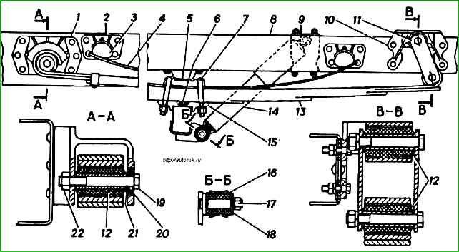- - резиновые втулки передних и задних концов рессор;