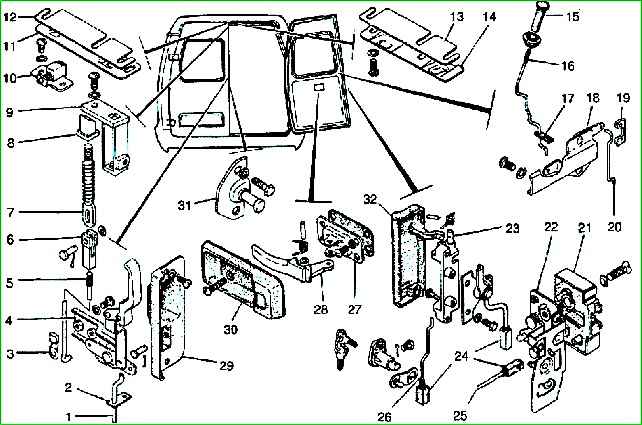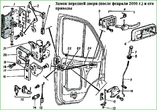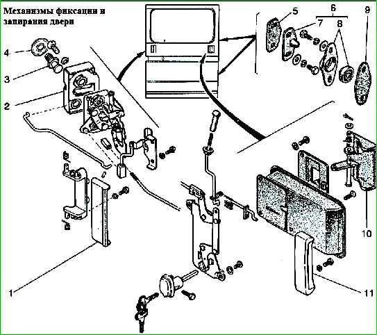 До февраля 2000 г. на передних дверях устанавливались замки, конструкция которых показана на рисунке.
