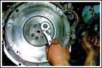 Маховик снимают для замены заднего сальника коленчатого вала, для его замены при повреждении зубчатого обода, служащего для пуска двигателя стартером, и для шлифования поверхности под ведомый диск сцепления
