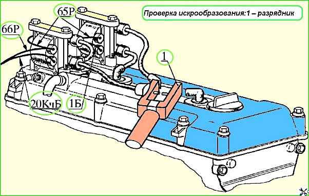 При прокручивании двигателя стартером в разряднике должно наблюдаться искрообразование.
