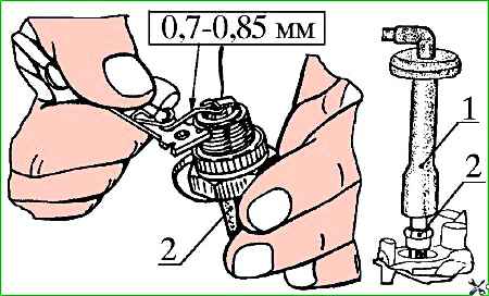 Зазор между электродами свечей должен быть в пределах от 0,7 до 0,85 мм.