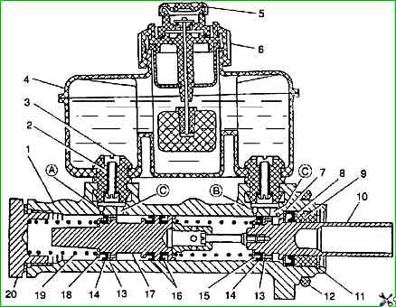 Сборку главного тормозного цилиндра проводят в порядке, обратном разборке.