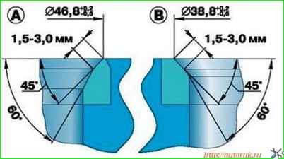 Более значительные дефекты устраняют шлифовкой. При шлифовке выдержать размеры седла, указанные на рисунке.