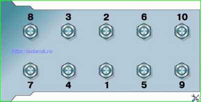Последовательность затяжки болтов крепления головки блока цилиндров.