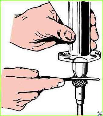 - проверить осевой зазор валика привода при помощи щупа, вставляемого между корпусом привода и шестерней.