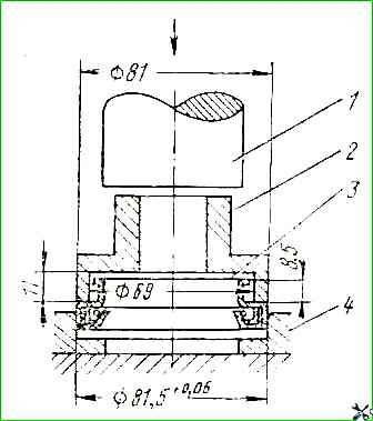 Запрессовка новой втулки производится со стороны коромысел с помощью выколотки.