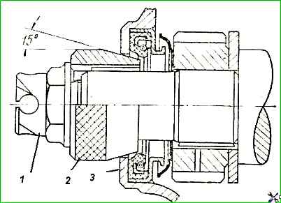 После этого закрепить крышку гайками, выдерживая одинаковый зазор по окружности между ступицей и отверстием крышки.