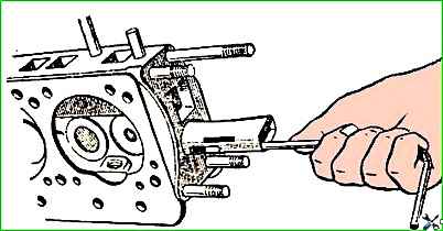 - - установить зазоры между торцом стержня средних клапанов и носком коромысла 0,35-0,40 мм, а крайних клапанов (выпускных первого и четвертого цилиндров) — 0,30-0,35 мм. Сделать это надо, как указано в статье «Регулировка зазоров клапанов»;
