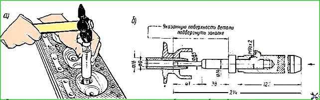 Выпрессовка изношенной направляющей втулки производится с помощью выколотки (рис. 16). С