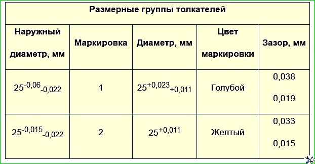 - - вставить толкатели в гнезда согласно меткам на них. Толкатели и отверстия в блоке предварительно смазать маслом для двигателя;