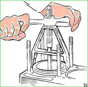 - - с помощью съемника (рис. 3) вынуть старую гильзу из блока;