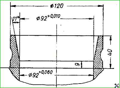 Ремонтные седла имеют наружный диаметр на 0,25 мм больше, чем стандартные, поэтому гнезда для седел растачиваются до размеров: