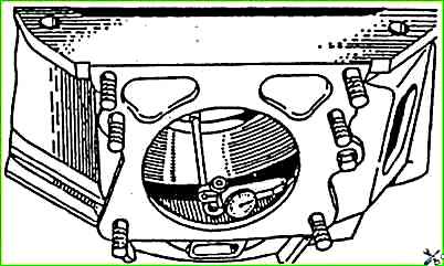 В блок цилиндров на крайних подшипниках устанавливают коленчатый вал, к фланцу которого крепится стойка индикатора.