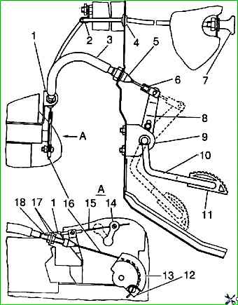 При отпущенной педали акселератора контакты микровыключателя 35 должны быть разомкнуты.