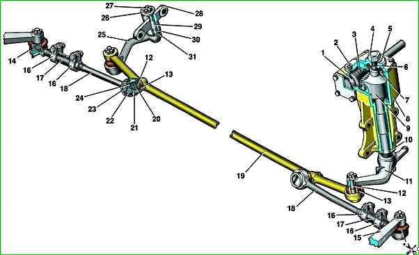 Устанавливают рулевую трапецию в порядке, обратном снятию.