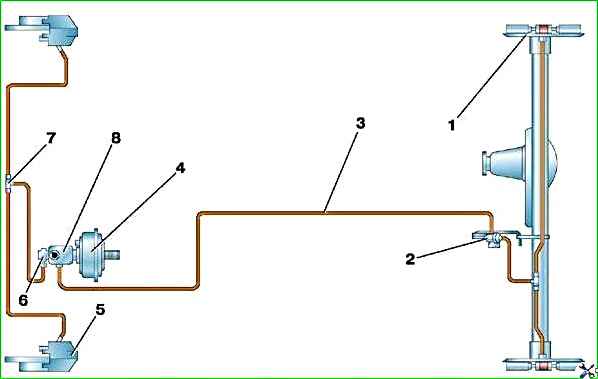 Привод системы гидравлический. Для облегчения управления приводом на автомобиле установлен вакуумный усилитель.