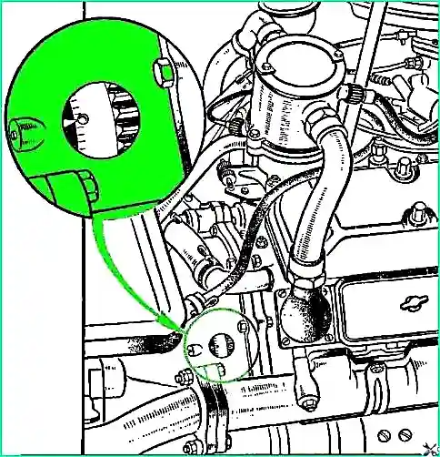 Затем, поворачивая коленчатый вал каждый раз на 90˚, отрегулировать зазоры клапанов остальных семи цилиндров в порядке их работы 5-4-2-6-З-7 и 8.