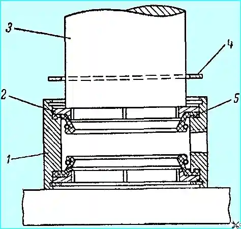 - - При установке блока в поворотную цапфу заложить смазку в полость между манжетами.