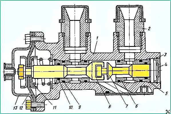 Посадочные места втулок и клапана уплотнены кольцами 9 и 10 соответственно.