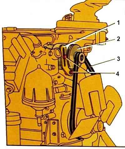 Натяжение ремней осуществляется перемещением генератора. Передаточное число привода генератора 2,41.