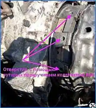 Вначале коленчатый вал поворачивают до совпадения выемки на маховике.