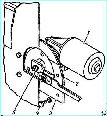 Устанавливаем рычаги щеток 2 (рис 2) на шлицевые концы штуцеров так, чтобы щетки находились у нижней кромки ветрового окна, закручиваем гайки 1