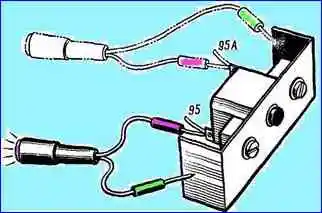 Для этого конец одного провода подключают к корпусу автомобиля, конец другого провода поочередно подключают к выводам переключателя режимов работы.