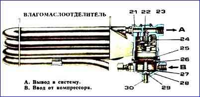 Для улучшения влагоотделения в питающей части тормозного привода автомобиля КамАЗ-53212 на участке компрессор — регулятор давления на первой поперечине рамы в зоне интенсивного обдува дополнительно установлен влагоотделитель.