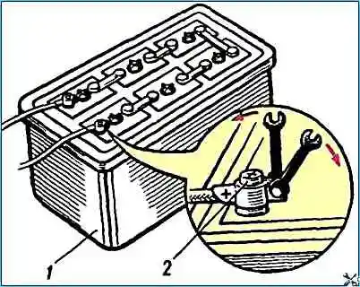 Путем внешнего осмотра проверить состояние выводов наконечников и плотность их крепления на полюсных выводах (рис. 1).
