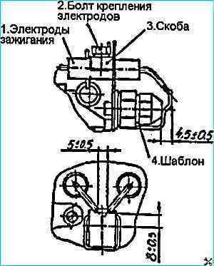 Установка электродов зажигания осуществляется по шаблону, как показано на рис. 2