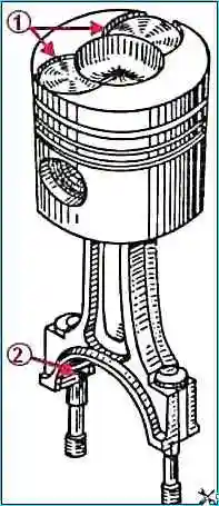 Поршень с пальцем и шатуном собирается после нагрева поршня до температуры 80÷100˚ C.