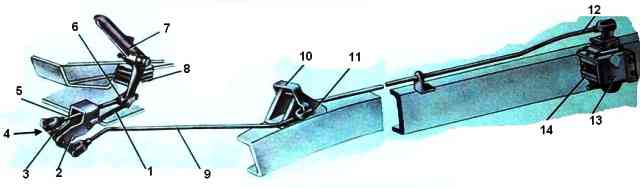 При необходимости регулируют ход педали, изменяя длину тяги 6 (см. рис.1 ) регулировочной вилкой 5.
