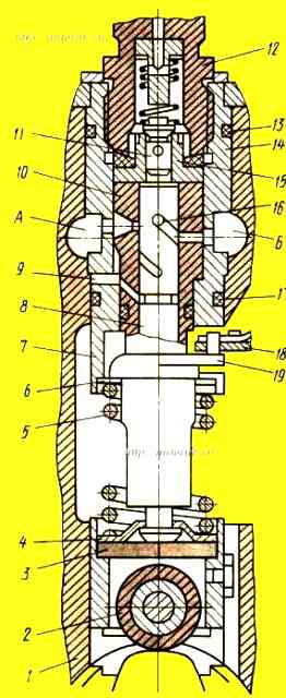 Нагнетательный клапан 11 и его корпус 15 тоже прецизионная пара, разъединяющая надплунжерную полость втулки 10 от топливопровода, по которому подается топливо к форсунке.