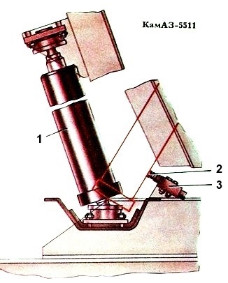 Механизм подъема и опускания платформы автомобилей-самосвалов КамАЗ-5511 и КамАЗ-55102