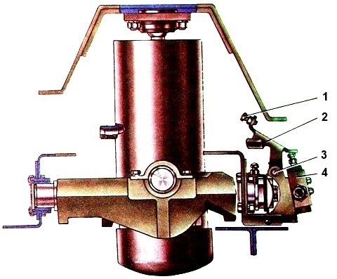 Воздух из ресивера подается к пневмокамерам крана управления. Масло из крана управления поступает по трубопроводам в гидроцилиндр.