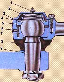 Для уплотнения шарнира от вытекания смазки и попадания грязи установлен торцовый сальник 8