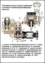 Топливный насос низкого давления установлен на топливном насосе высокого давления (на задней крышке регулятора частоты вращения) и предназначен для подачи топлива от бака через фильтры грубой и тонкой очистки к насосу высокого давления