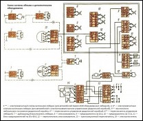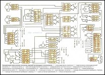 Соединение всех потребителей с источником питания выполнено по однопроводной схеме, за исключением плафона освещения вещевого ящика, вывод «—» которого выведен на панель предохранителей