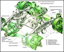 Они состоят из картера моста, главной передачи, межколесного дифференциала и полуосей.