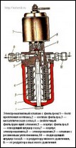 Фильтр установлен с левой стороны автомобиля на раме и предназначен для удаления из топлива механических примесей и воды (рис.1)