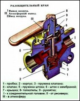 Разобщительным краном перекрывают при необходимости пневматическую магистраль, соединяющую автомобиль-тягач с прицепом (полуприцепом).