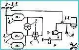 На автомобилях КамАЗ-5320 воздух в контур аварийного растормаживания (рис.1) при работающем двигателе поступает непосредственно от компрессора через тройной защитный клапан 13